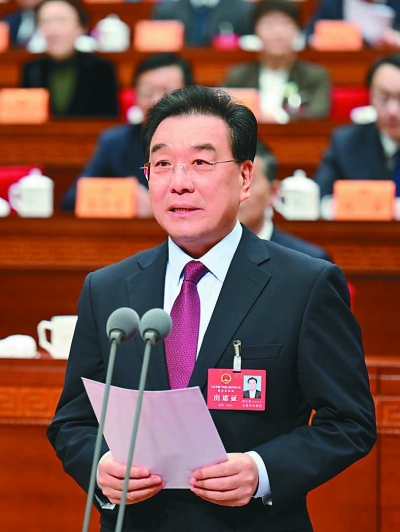 省长刘小涛代表省人民政府向大会作政府工作报告。 朱江 摄