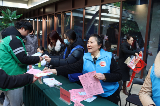 活动还设置了公益服务区与游园区,提供政策咨询、法律科普、健康检测、新春送福、理发等便民服务,并组织幸运投壶、蒙眼摸福、挑福豆、踢毽子等传统趣味活动,营造出温馨祥和的迎新春氛围。