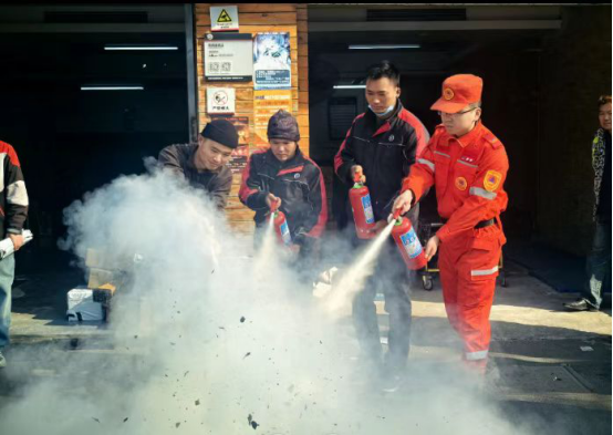 培训现场,讲解人针对快递员送货途中可能遇到的突发火情、电气隐患等,讲授正确的报警流程和疏散知识,特别强调在保护客户信息安全的前提下优先应急处置原则;针对电动车安全专项板块,详细讲解了电池充电规范、日常检查要点及充电起火初期的扑救方法。除了工作场景安全教育,培训还延伸至宿舍防火、家庭用电安全等生活领域,在现场模拟消防演练实操环节。快递员小周第一次亲手使用了灭火器,他说:今天掌握了提、拔、握、压四字口诀,心里踏实多了。
