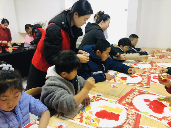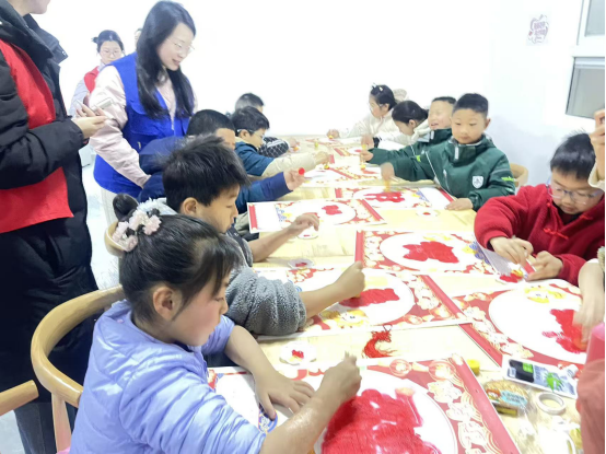 在实践环节,孩子们在老师与工会职工志愿者指导下挥毫泼墨,认真书写春联、福字,创作吉祥如意”“金马迎春等吉祥作品,并将饱含心意的春联赠予社区居民,传递新春暖意。拓印体验区同样精彩纷呈,孩子们学习传统拓印技艺,制作福字、生肖主题年历,在动手实践中感受非遗文化乐趣。